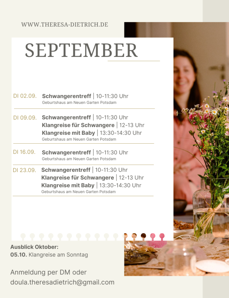 Ich bin Theresa Dietrich und begleite dich durch verschiedene Phasen deines Lebens. Mit Klangreisen, systemischem Coaching oder als Doula in Berlin und Potsdam